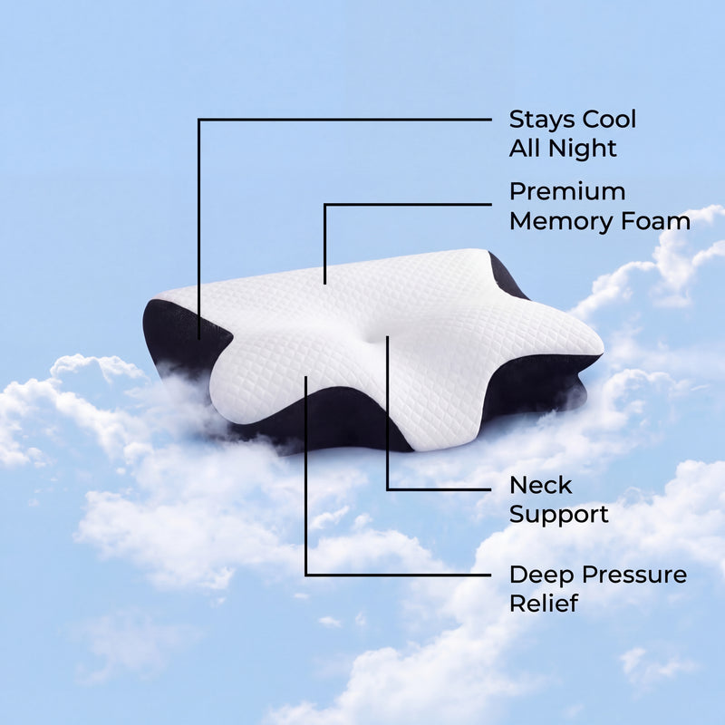 ❌ Flat and unsupportive ❌ Waking up stiff every morning ❌ Tossing and turning Ergonomic neck support ✅ Wake up pain free ✅ Sleep through the night ✅